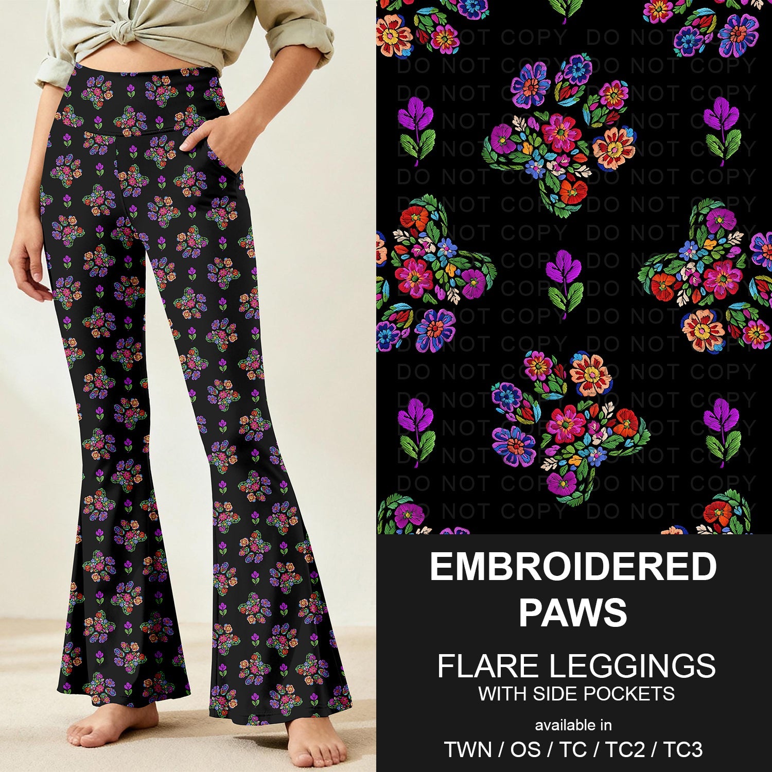 B259 - Preorder Embroidered Paws Flare Leggings (Closes 11/07. ETA: mid Jan.)