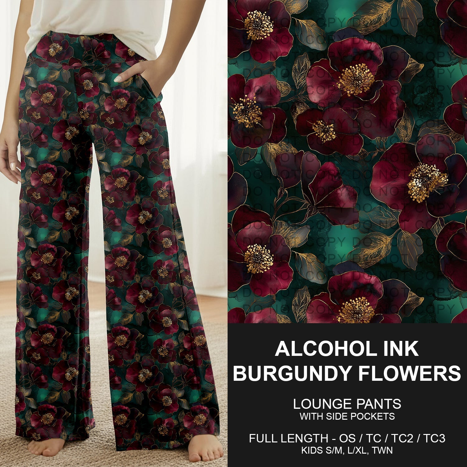 B260 - Preorder Alcohol Ink Burgundy Flowers Lounge Pants (Closes 11/09. ETA mid Jan.)