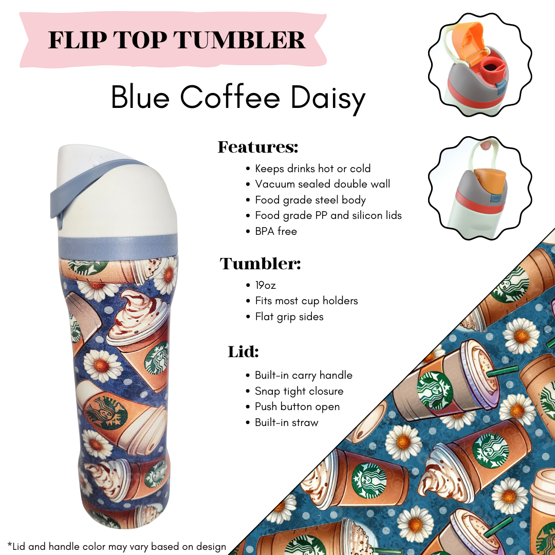 Blue Coffee Daisy Flip Top Tumbler