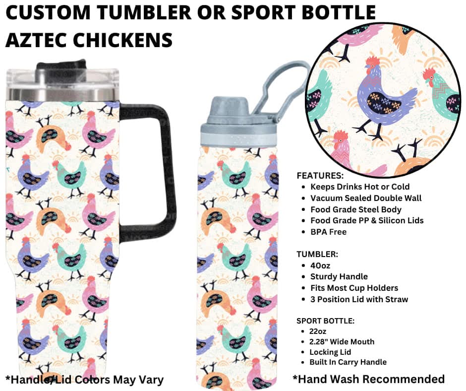 Aztec Chickens Custom Tumbler or Sport Bottle