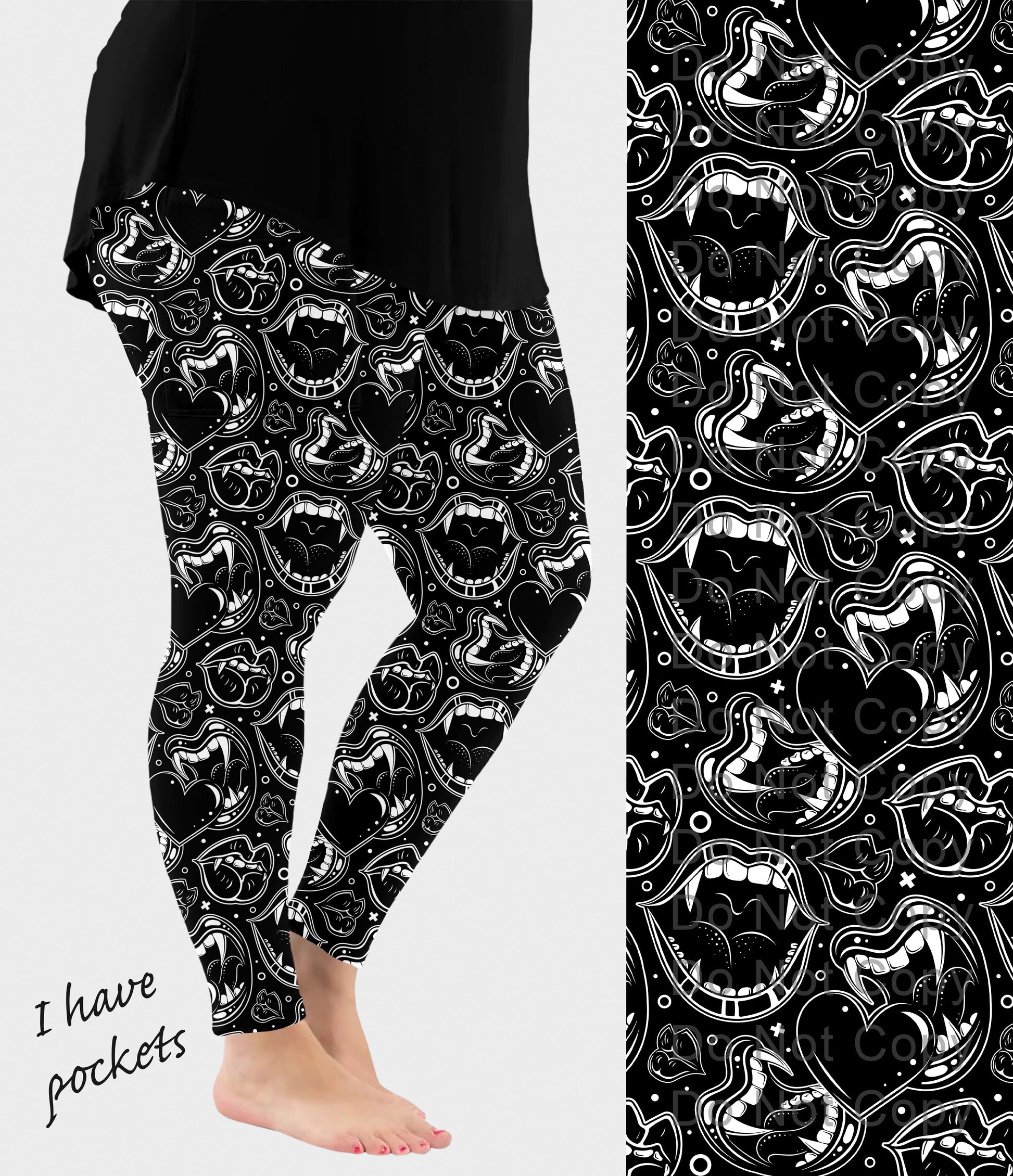 RTS - BW Vampire Fangs Leggings w/ Pockets