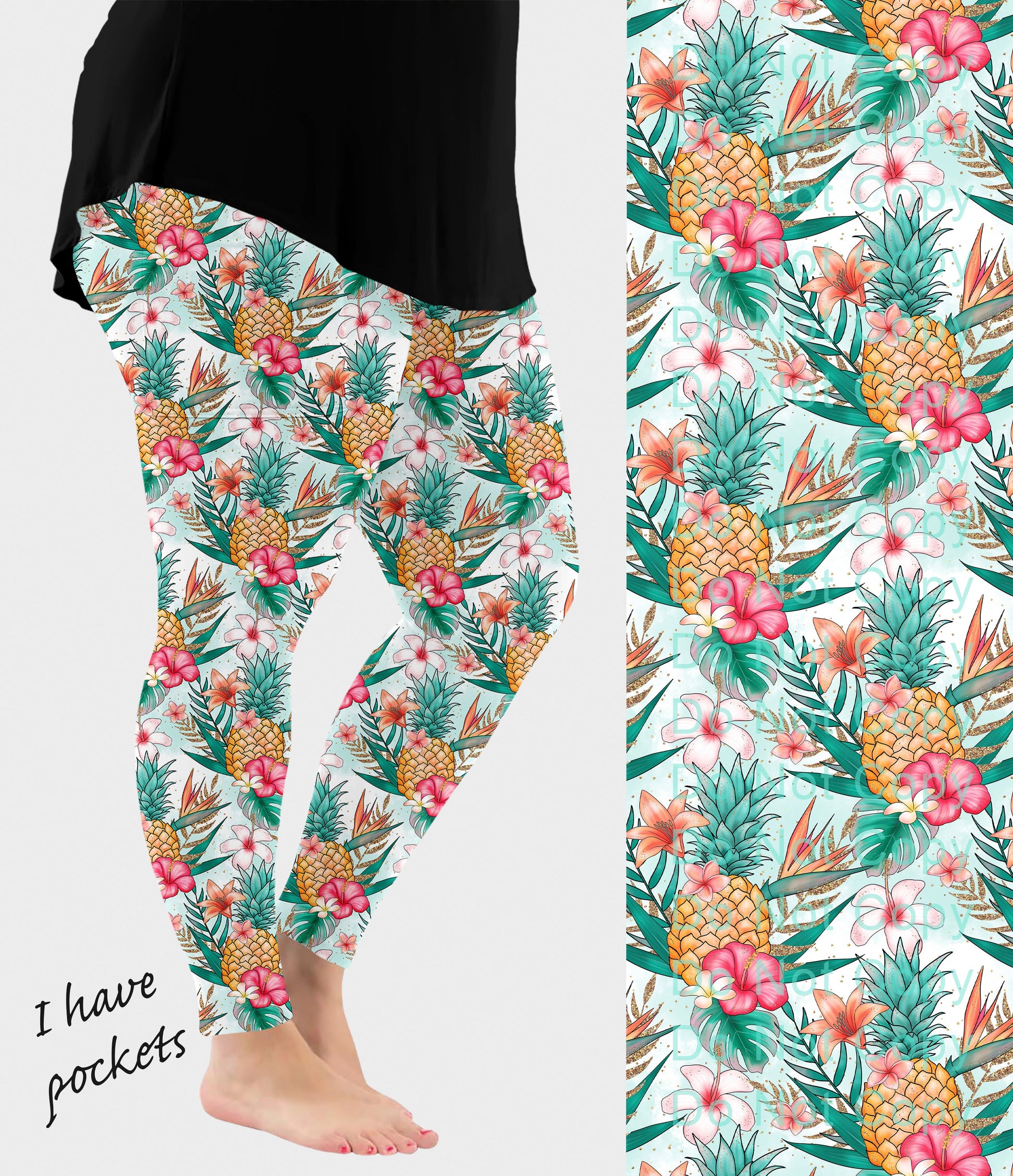 RTS - Pineapple Hibiscus Leggings w/ Pockets